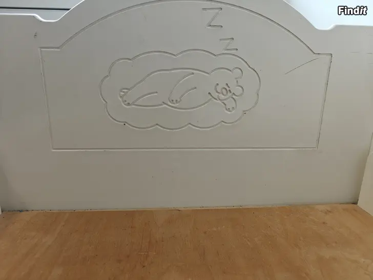 Barnsäng utdragbar. Skråmor finns. Men sängen är fullt användbar.