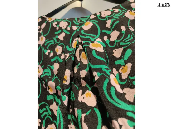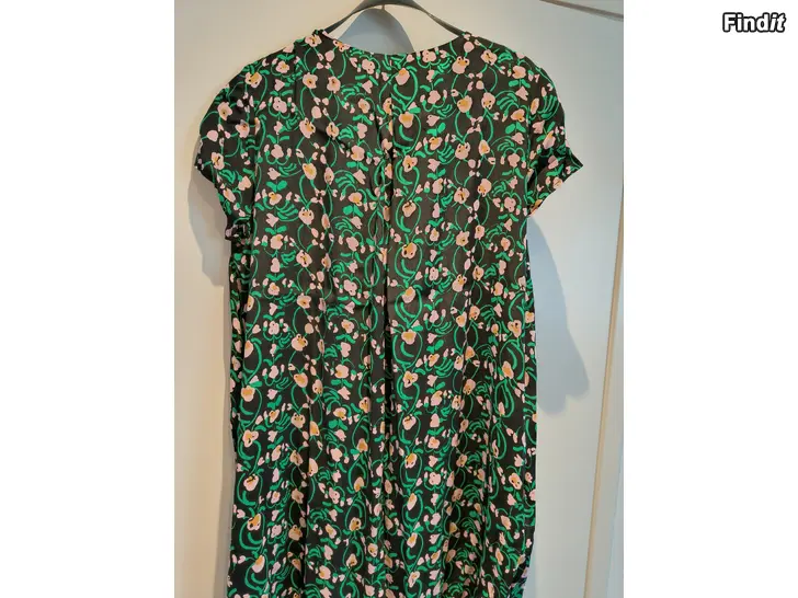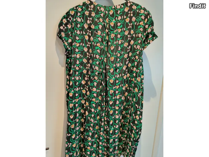 Täysin käyttämätön kesämekko . Laput vielä kiinni . Itselle hiukan niukka vaikka kooltaan on reilu malli . Materiaali viskoosia . Kai - kai edestä 60 cm . Takana niskasta lähtien helmaan asti vastalaskos joka antaa väljyyttä .Sivuilla upotetut taskut . Ostettu pari kesää sitten . Olka - helma 107 cm .