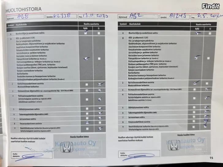 Hienosti toimiva juuri katsastettu ja huollettu 4WD CR-V. Tästä sopivasti upea neliveto CR-V täyd. merkkiliikken huoltokirjalla. huollettu viimeksi 160tkm kohdalla, NAVI, Peruutuskamera, radio/aux/usb/bluetooth, parkkitutkat edessä ja takana, webasto lisälämmitin, Airbagin onoffnappi + isofixkiinnikkeet lastenistuimille, 2 x uudenver,renkaat aluvantein, Autom ilmastointi, Adapatiivine vakinopeudensäädin, Led valot, Lukee valkoiset linjat ja nopeudet, Ajotietokone Ajanvakautus , Varashälytin, Autohold, häräjarruavustin BA, 2 x keyless avainta, Juuri katsastettu joten seuraava katsastus ennen 28.3.2028! - Myös vaihto ja rahoitus kysy meiltä lisää.p. 050 3424190, 050 4444522