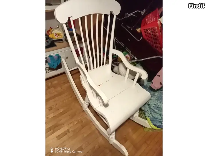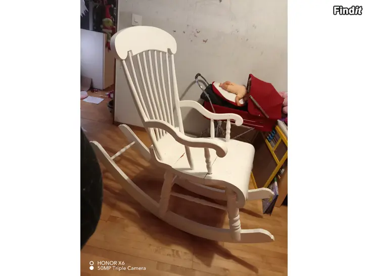 Vanha keinutuolin joka maalattu valkoiseksi ehjä on meillä lastenhuoneessa tiellä tällä hetkellä vain nouto