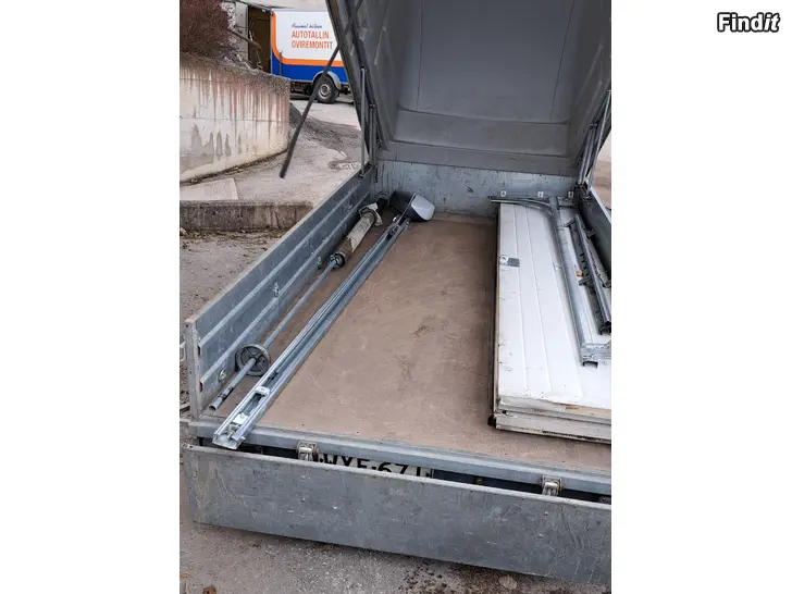 Kaukosäätimellä toimiva nosto-ovi johon hankittu uusi moottori mutta jousi mennyt poikki. Korkeus 2,15 m ja leveys 3 metriä.