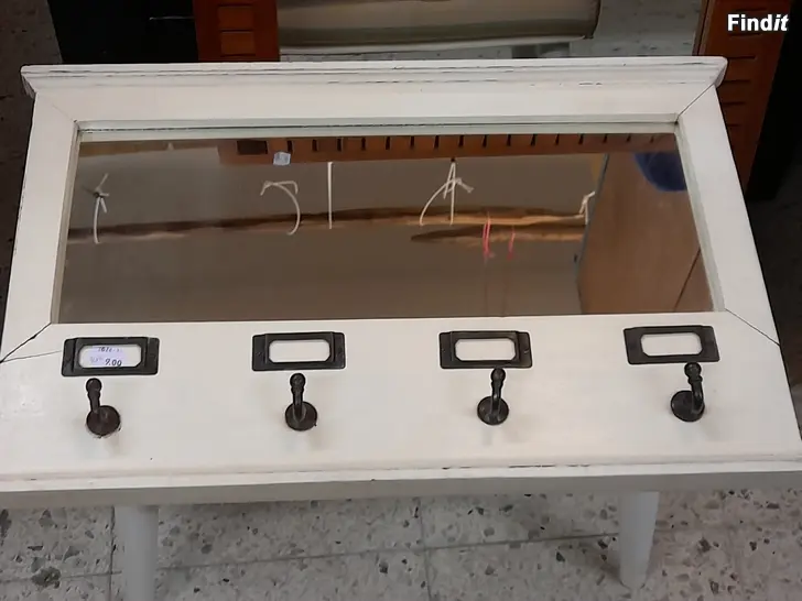 Spegel med vit träram och 4 hängkrokar.