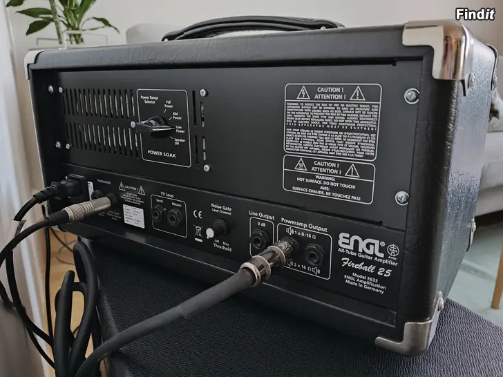 Toppenbra gitarrförstärkare i toppskick! Två kanaler med gemensam EQ. Inbyggd noise-gate, mid-boost och attenuator. Mera info hittas här: https://www.engl-amps.com/shop/heads/fireball-25-e633/