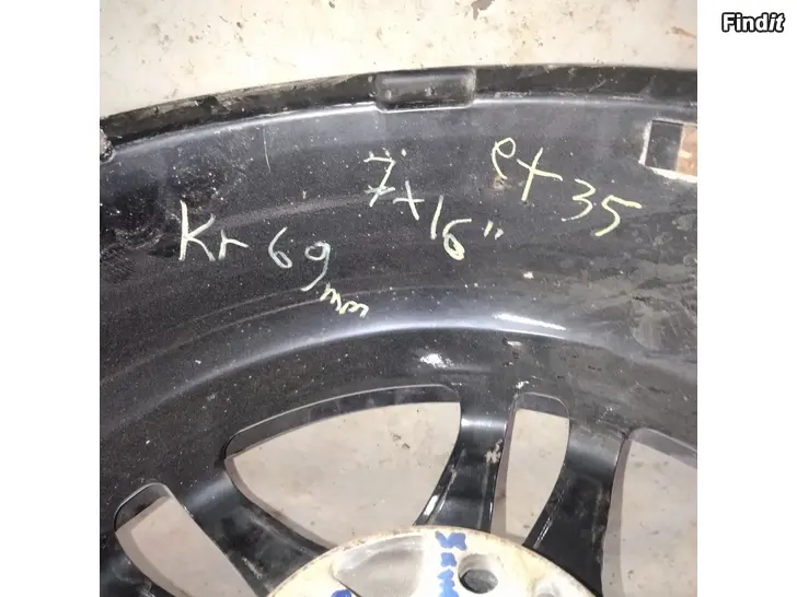Vanteen halkaisija 16, leveys 7, pulttijako 5 x 112, ET35, KR 69,1.