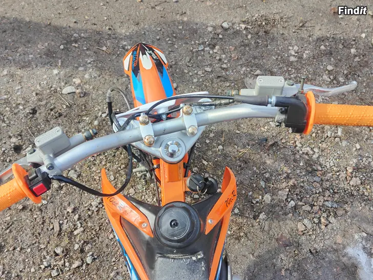 Ca 1,5 år gammal x- moto cross. Körd med några gånger.Kom ej till användning hos oss. Tyvärr har kattorna klöst på sitsen. Övrigt i gott skick.