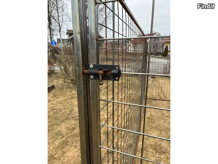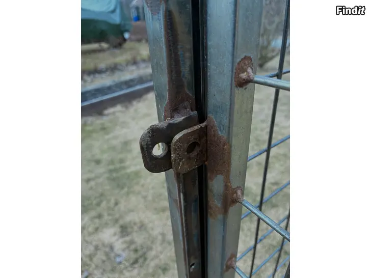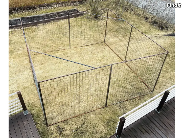Eläinhäkki. 4x4m. Jäykkä elementti 200x185cm 8kpl. Ruuvikiinnitys. Verkon lanka 4,2mm paksua. Verkon reikä 8x7,5cm. Yhdessä elementissä ovi 66x148,5cm. Ovessa salpa ja munalukon paikka. Ylhäällä sivutuet 2kpl. Pientä pintaruostetta mutta ei läpiruostumista. Kuljetus lähialueelle tai nouto.
