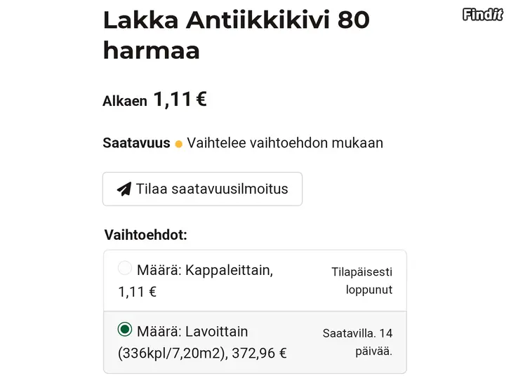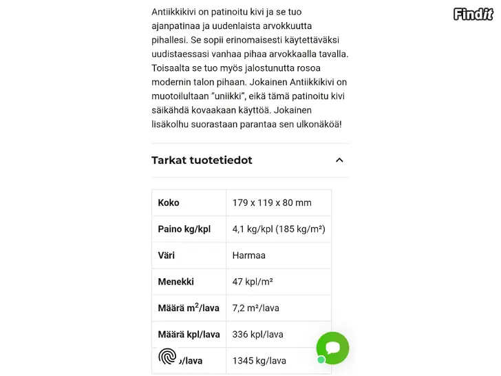 Säljes 360 stycken gårdsstenar av modellen Antiikkikivi Lakka 80. De räcker till 7,6 kvadratmeter enligt mina beräkningar. På bilden har jag ringat in stenarna i rött, överst finns några kapade halvor som fås med på köpet. Pris 350 euro, hämtas i Jakobstad. Säljer endast hela partiet. Bifogar bilder med tilläggsinformation så ni kan räkna själva.
