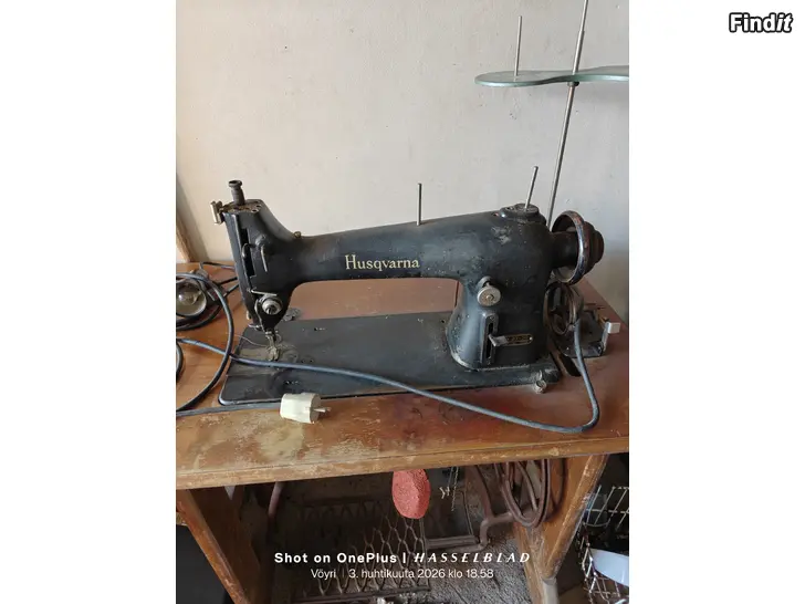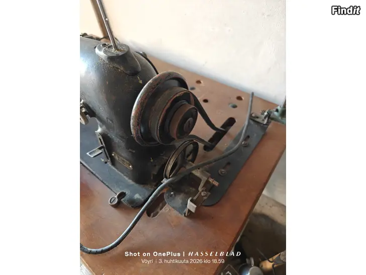 Vanha hieno valovirralla toimiva teollisuusompelukone. Ollut pitkään käyttämättömänä, mutta toimivana laitettu varastoon.