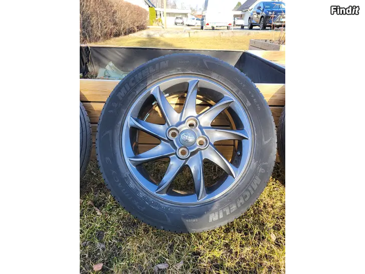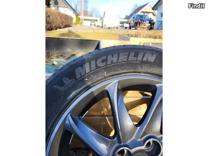 Säljes gråa 4x100 16 tums aluminiumfälgar. På fälgarna sitten Michelin 205 55 16 däck med mönsterdjup mellan 5mm till 5,5mm. På inresidan av fälgarna finns aningen oxidering, på utsidan i bra skick. Muttrarna följer med på köpet. Fälgarna har ursprungligen varit på en Toyota Yaris. Pris 350€.