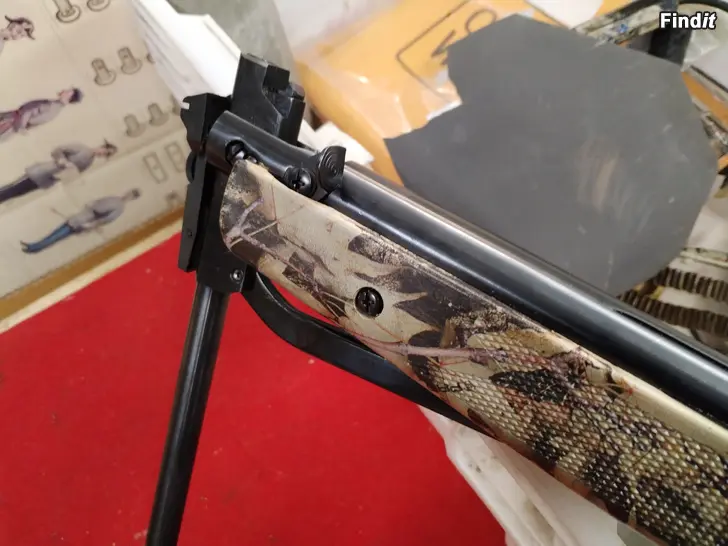 ProTocol , taittuvapiippuinen ilmakivääri. Maastokuvioitu, 4.5 mm kaliiberilla. Tämä on uusi ja melko tehokkaan tuntuinen, kerran koekäytetty ja hyväksi havaittu. Halpaan hintaan vaikkapa mökki / harrastuskäyttöön.
