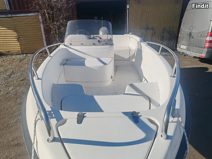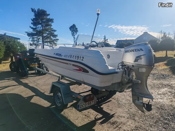 Myydään toimiva paketti isomman tieltä pois. Kaikki toimii niinku pitää. Käytönjälkiä toki löytyy näin vanhasta veneestä, pohja kaipasi maalia. Voidaan myydä myös ilman kärryä.