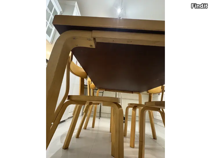- Artek 82B matbord + 4 st Artek 69 stolar björk / vit laminat