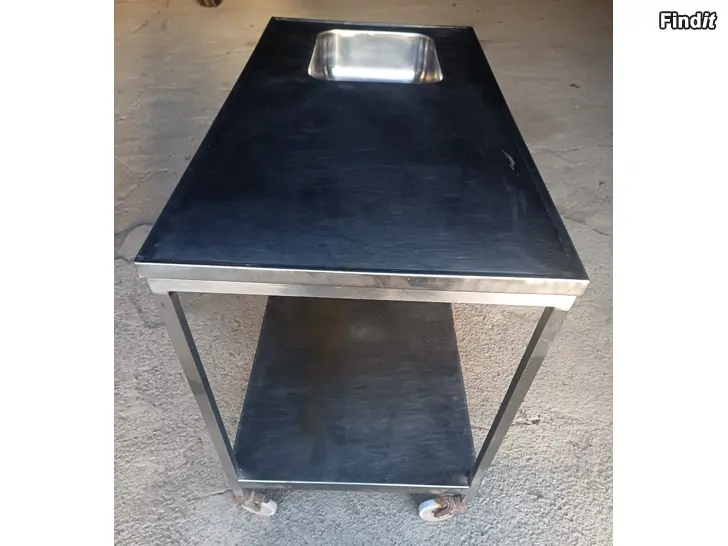 Myydään rosterinen pöytä altaalla ja alatasolla. Hyvä kuntoinen. Pyörät ei pyöri, tarvii rasvauksen tai jotain muuta toimenpidettä.