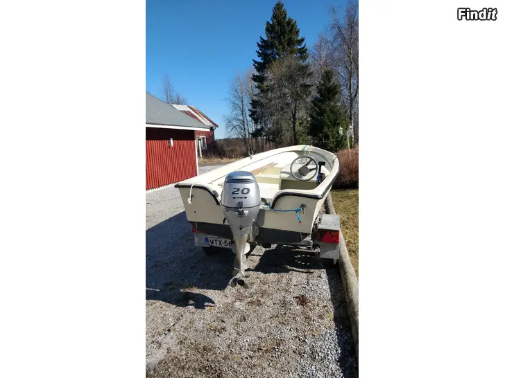 Båten är försedd med en litet medkörd 20hv fyrtaktsmotor Honda BF20D från år 2018.