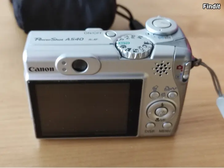 Canon PowerShot A540. Ei testattu toimivuutta joten ei takuuta toimivuudesta. Ulkoapäin hyväkuntoinen. Ollut viimeksi käytössä noin 5 vuotta sitten. Sis kantolaukun