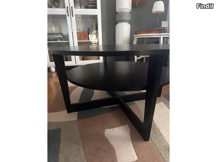 Svart soffbord från Ikea. I använt skick med en del skavanker men överlag helt. Mått 90 cm brett och 48 cm högt.