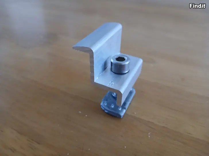 PV väli- tai päätykiinnike salmiakkimutterilla 25-40 mm paneeliin. Hinta 1 eur/kpl.