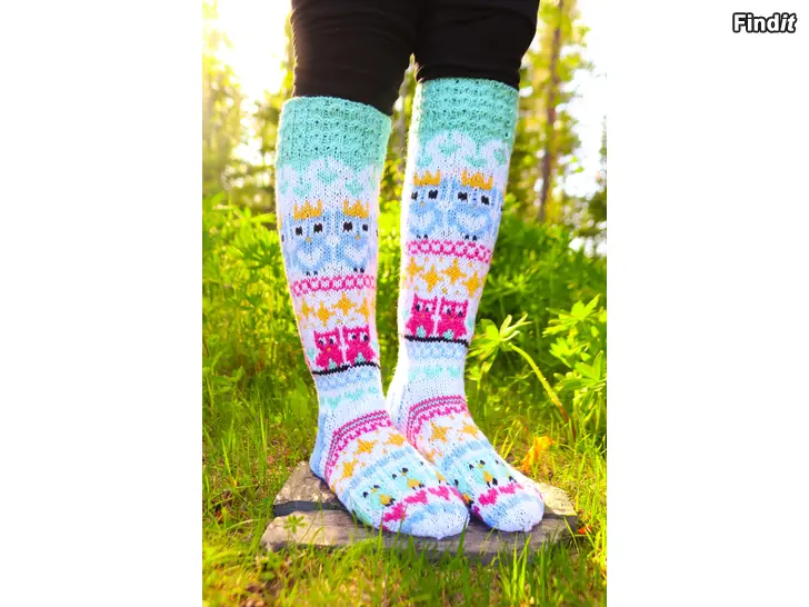 Villasukat Nalle langasta. Varren mitta 33 cm ja jalkaterä 24 cm. Postikulut tarvittaessa 4e s-kokoisessa paketissa manner-Suomen alueella. Samaan pakettiin mahtuu muutakin.