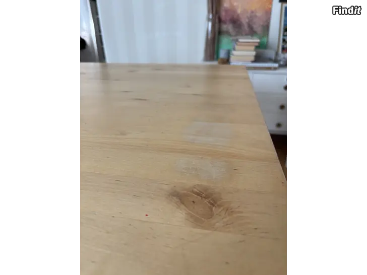 Bordet har varit i flitig användning och har därför en del slitage och märken på ytan. Helhetsintrycket är ändå fint, men det passar extra bra för dig som kan tänka dig att slipa eller måla om det för ett fräschare utseende.
