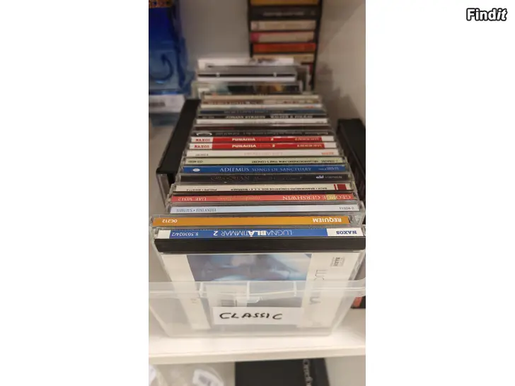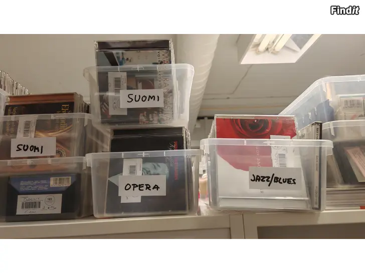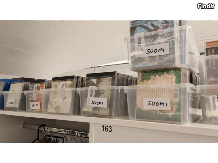 Paljin eri levyjä. Suomimusiikkia varmaan 10 laatikkoa. Comboliina kirpputori hylly 161 ja 163, Vaasa