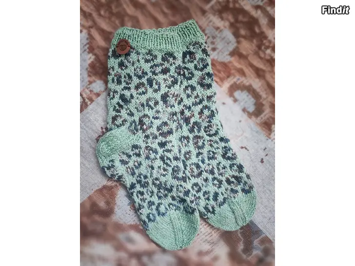 Itseneulotut kirjoneulevillasukat leopardikuviolla, koko 37