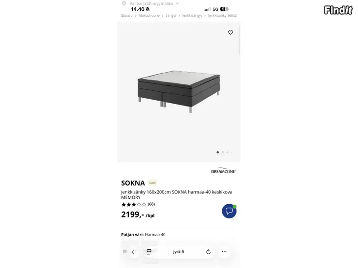 Sokna‑jenkkisänky on suosittu malli, jossa on erityisesti 7‑vyöhykkeinen mukavuusjärjestelmä ja 7 cm paksu sijauspatja, jolloin unen tuki on selkeästi parannettu. Ilmoituksen hinta 600 € on selvästi alennus suhteessa normaaliin hankintahintaan, joten se on hyvä tilaisuus saada korkealaatuisia jenkkisänkyä halvalla