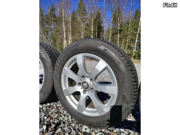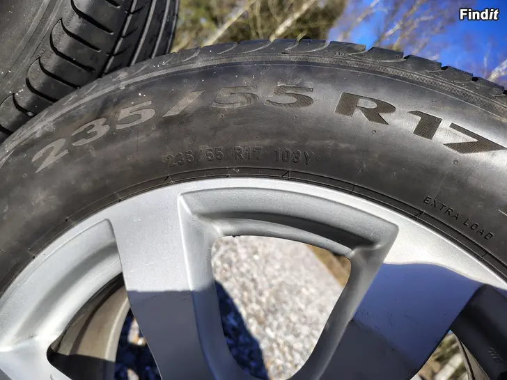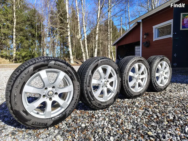 Jag säljer Pirelli sommardäck med fälgar, tillverkade 2023, storlek 235/55 r17, endast körda en säsong, skicket på däck och fälgar är som nya, vilket syns på bilden. Bultmönster 5×120. Pris för alla 4. Ring 0404662945