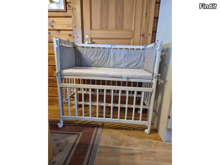 Säljes bedside crib + tillhörande madrass och spjälskydd.