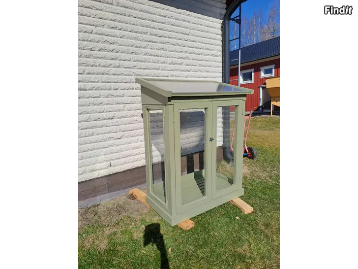 Säljes miniväxthus/växtskåp gjort för att stå uppefter väggen. Perfekt att ha på balkongen eller på terassen.