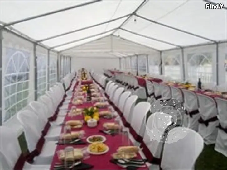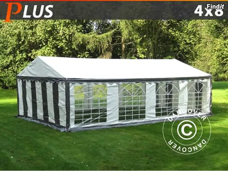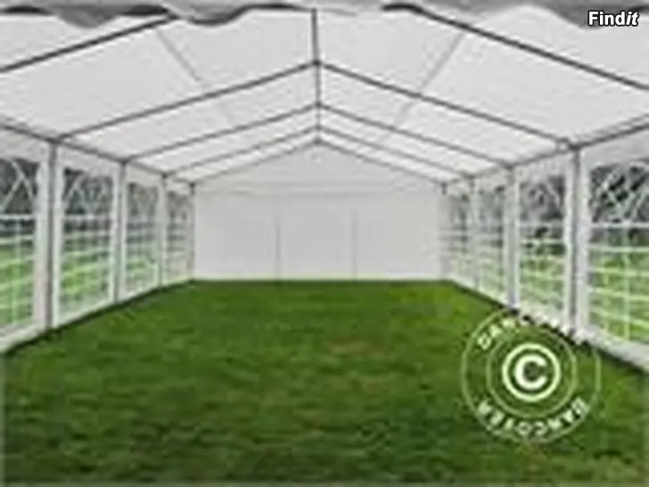 Kvalitets partytält 4 x 8 m i kraftig polyesterduk med galvaniserat stål.