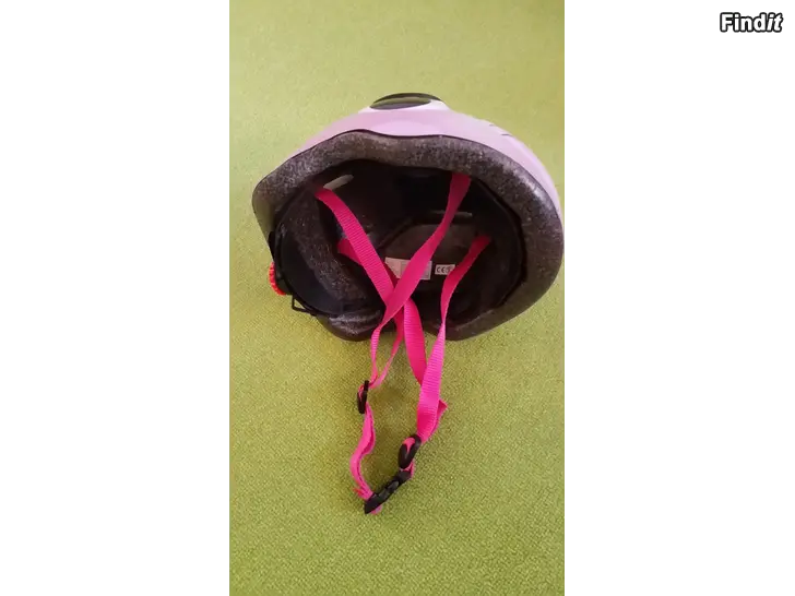 Yhdellä lapsenlapsella käytössä ollut siisti kypärä muuten, mutta etureunassa muovipinnassa pieni vika ja toisen korvan päässä painauma. Katso kuvista. Ei vaikuta turvallisuuteen eikä käyttöön.