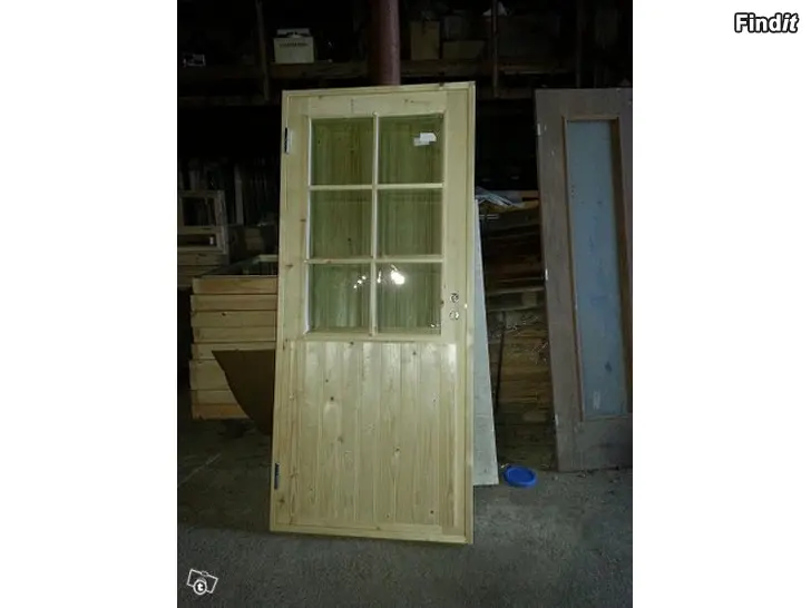 9x19 puuvalmiita mökkiovia 6-ruutuikkunalla 335,00/kpl.