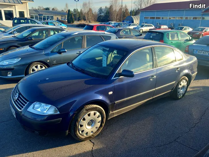 SUOMI-auto, Met.sininen, Huoltokirja, Automaattinen ilmastointi, Vakionopeudensäädin, ESP-ajonvakautusjärjestelmä, ABS-jarrut, 4 x airbag, Ajotietokone, Keskuslukitus, 4 x sähkölasit, Sähköpeilit, 2 x renkaat toiset aluvantein, CD-soitin, Vetokoukku, Lohkolämmitin + sisäpistoke, Sumuvalot, Juuri laitettu uudet kesärenkaat ja takaiskarit, Katsastettu 8/2025, Rek.10/02, NÄYTTÄVÄ PASSAT HUIPPUVARUSTEILLA!