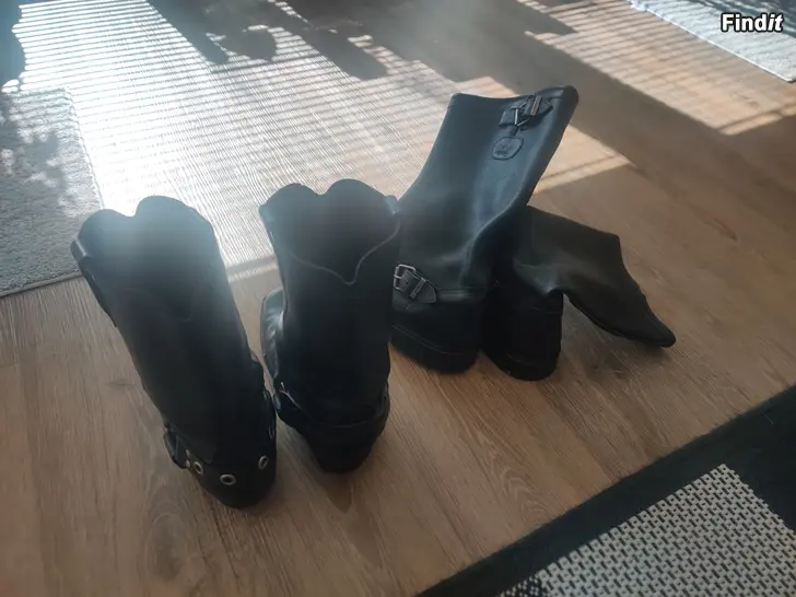 Lähes käyttämättömät ajosaappaat.Aitoa nahkaa.100€.Koko 45.Toiset bootsit kunto ok koko ilm 43 hinta 15