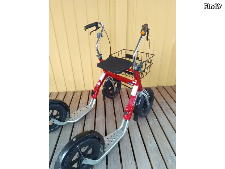 Siisti ja Hyvä kuntoinen potkupyörä / Rollaattori lyhyt malli. Ulkokäyttöön ja myös sisätiloihin. Väri Hieno punainen. 12 tuumaisilla renkailla, säädettävät ohjaustangot, istuin, jarrut, pysäköinti jarruilla, tavarakori. Voidaan myös tuoda ostajalle. Tiedustelut 0401947979