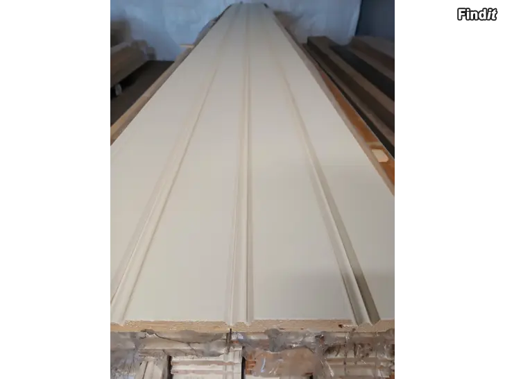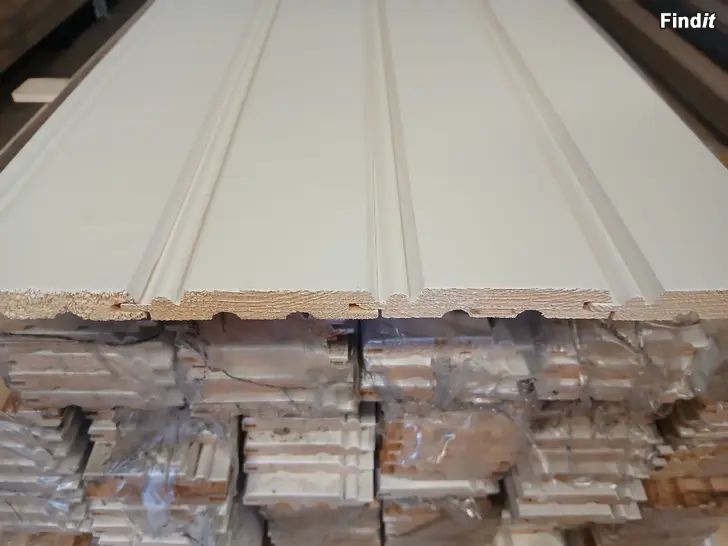 Valkoiseksi peittomaalattu helmipaneeli. Materiaali mänty.