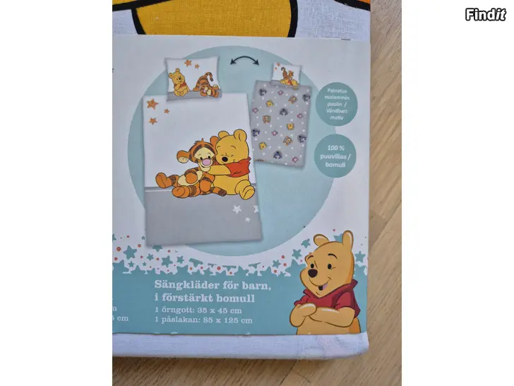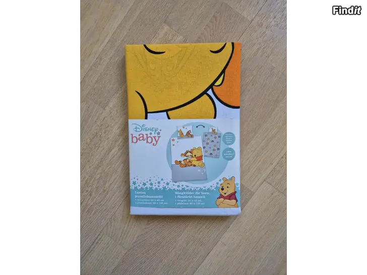 Nytt Baby Disney påslakan 85 x125 och örngott 35 x 45. Mönster på båda sidorna. 100 bomull. Finns i Smedsby. Katthushåll.