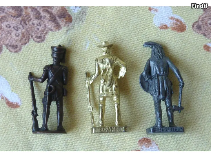 myyn kuvissa näkyvät vanhat metalliset Kinder-sotilaat.