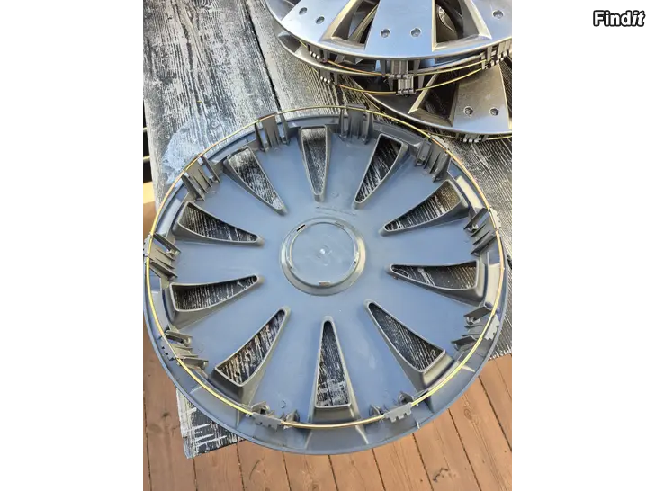 4st helt nya, oanvända 15 tums navkapslar säljes. Mittendelen går att ta lös om man vill byta till något märke.