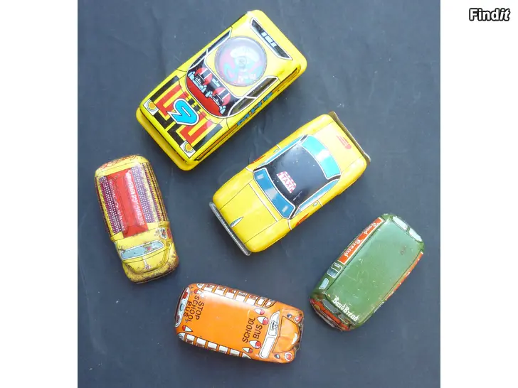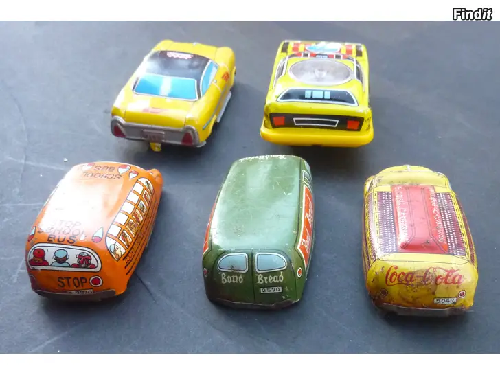 myyn kuvissa näkyvät vanhat leikkiautot.