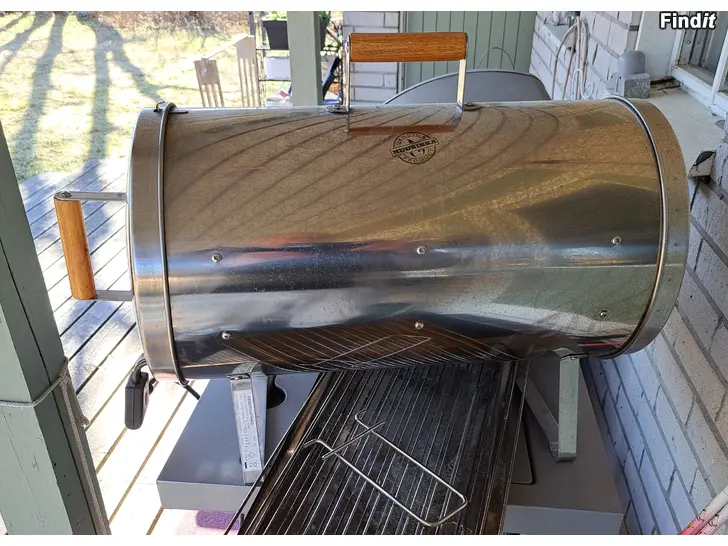 Mukana purupelti, rasvapelti ja 2x savustusritilät. Nostokahva ritilöille ja rasvapellille.