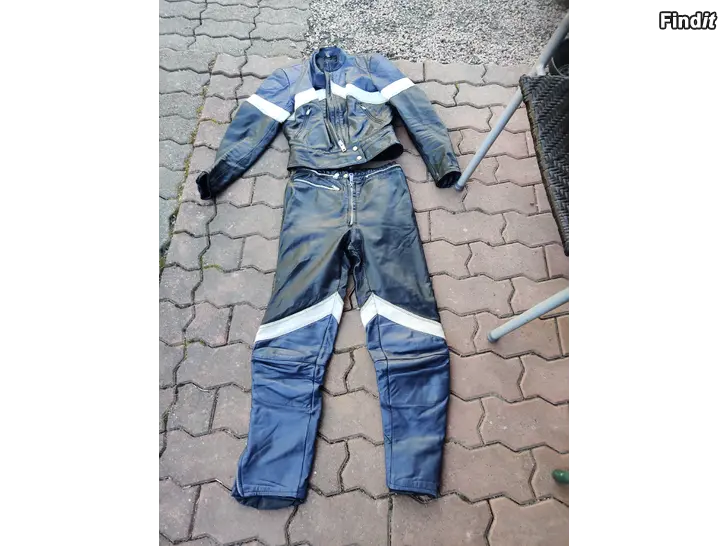 Siisti hieno ajoasu.Saa vetoketjulla yhteen.Aitoa nahkaa.Koko ilm 40 .Sanoisin hoikalle 150-160 cm.