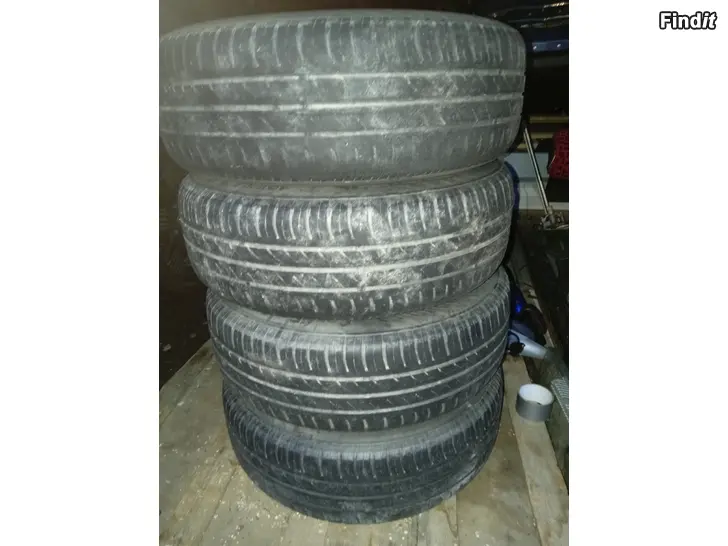 Päällä kesärenkaat joista 2 parempaa, ja 2 sisäreunasta kulunut enemmän, eli 2 joilla kyllä ajelee vielä hyvinkin.