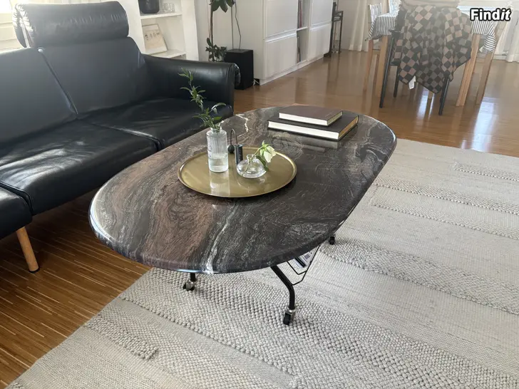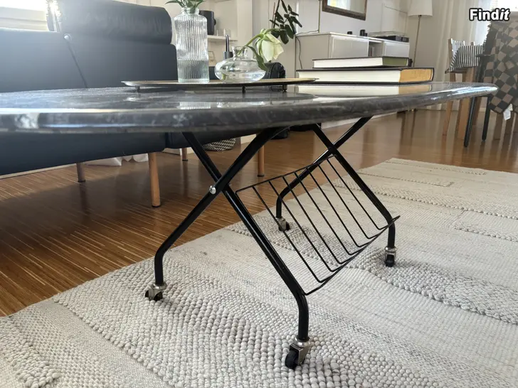 Marmorikantinen kiveä sohvapöytä. Marmorikansi on vanhan 60-luvun lehtiteline pöydän päällä. Kansi on irroitettavissa. DIY. Nouto, vaasa