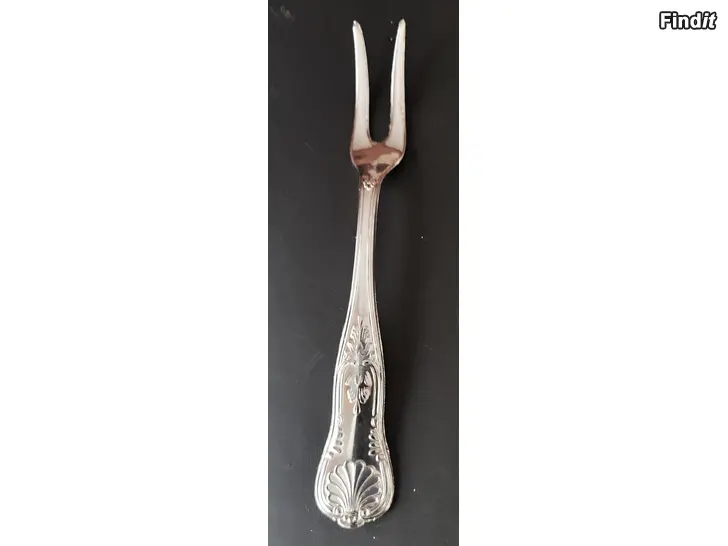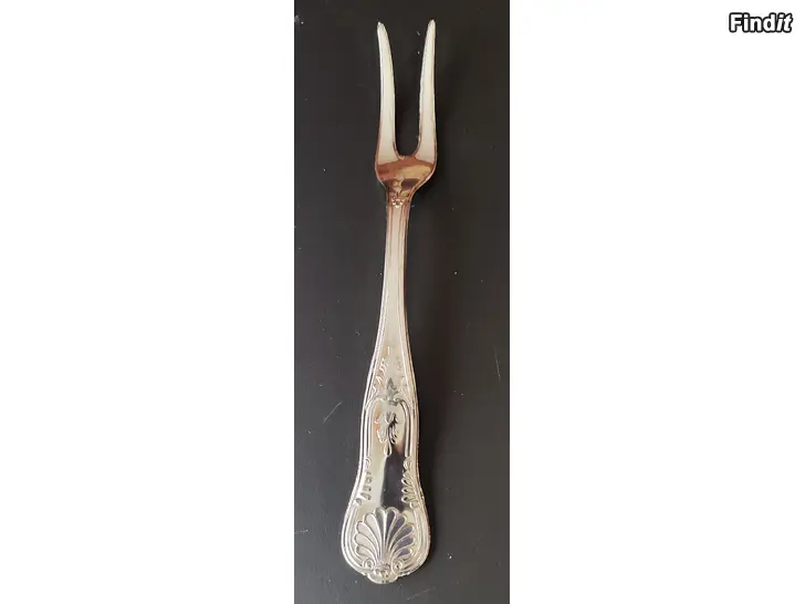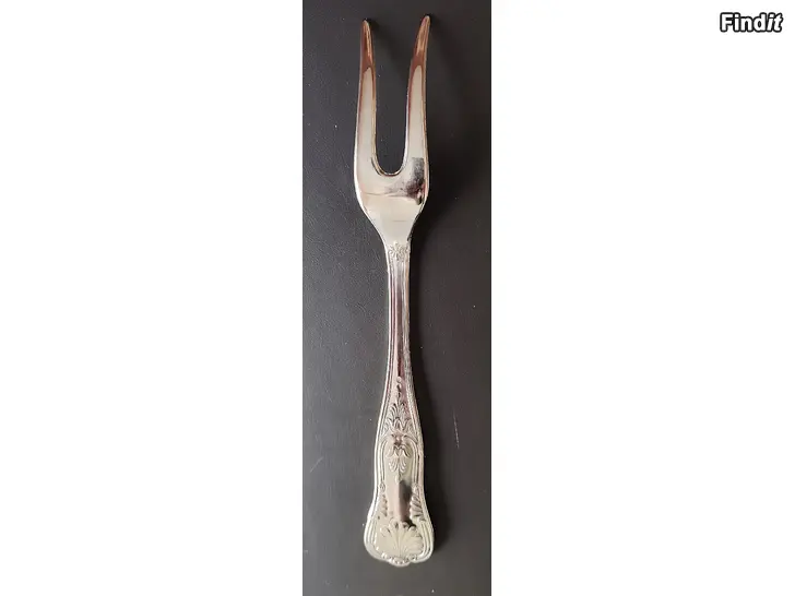 Tästä kauniisti molemmilta puolilta koristeltu hopeoitu Lihahaarukka / Tarjoiluhaarukka. Tarjoiluhaarukan pituus on 26cm Leveys varrenpäästä 3.5cm. Haarukka on todella hyvässäa ja siistissä kunnossa ei naarmuja tai kolhuja.