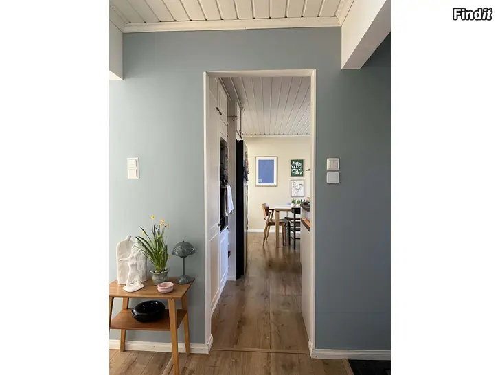 Asuinpinta-ala 100m2, pieni 300m2 aidattu piha, jossa iso terassi sekä aina lämmin palju.