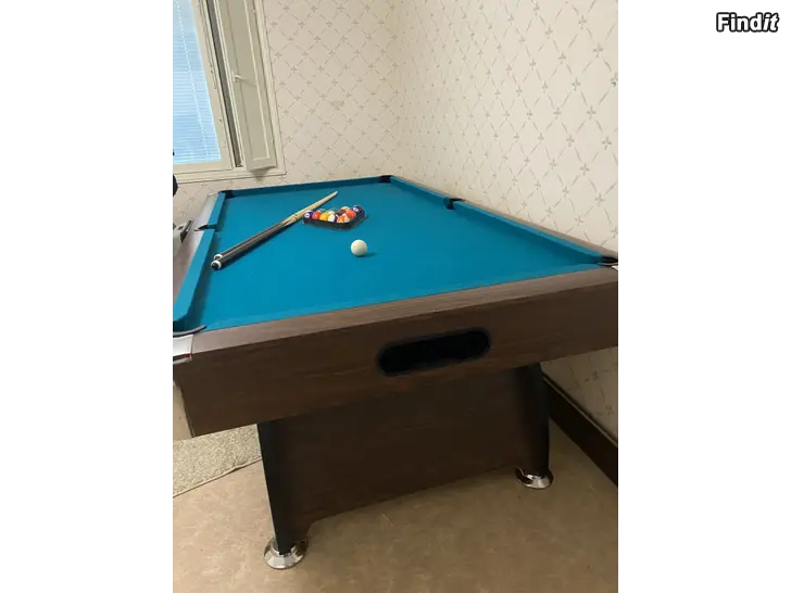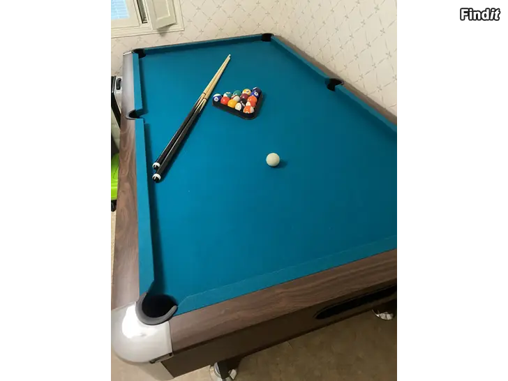 The pool tables is used but not much due to the small space in the room. Its still in same condition as new, comes with full set of balls and two cue sticks.