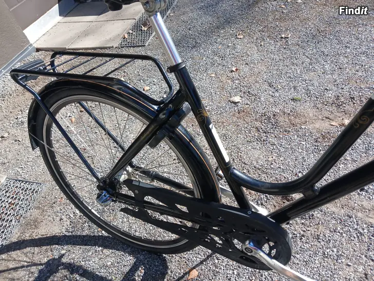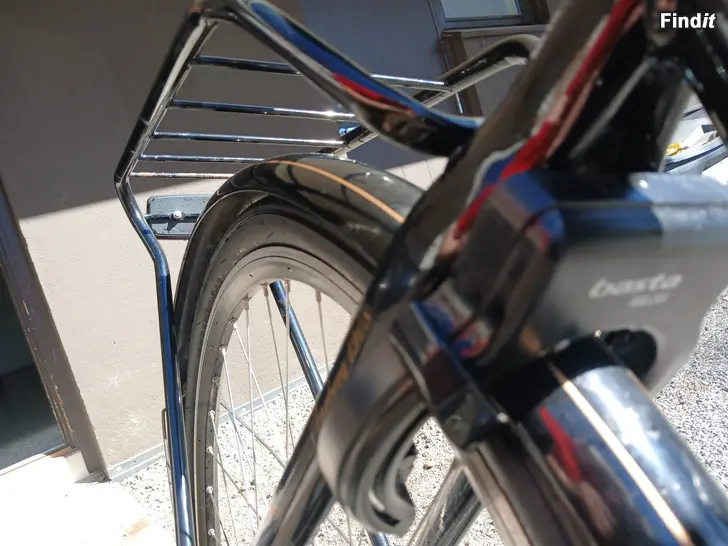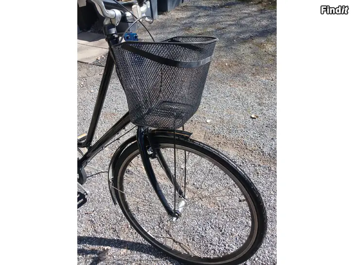 Pyörässä on matala runko helpottamaan kyytiin nousua, täyspitkä ketjusuoja sekä lokasuojat. Takana on tavarateline ja edessä kiinteä etukori kuljetusta varten. Pyörä soveltuu yleiseen kaupunki- ja asiointiajoon. Väri on musta. Pyörässä 3v Shimanon Nexus vaihteisto ja Basta lukko kaksilla avaimilla. Myydään vähäisen käytön vuoksi. Pyörä Vaasan Suvilahdessa. Nouto / lähetys ja kulut ostajalla