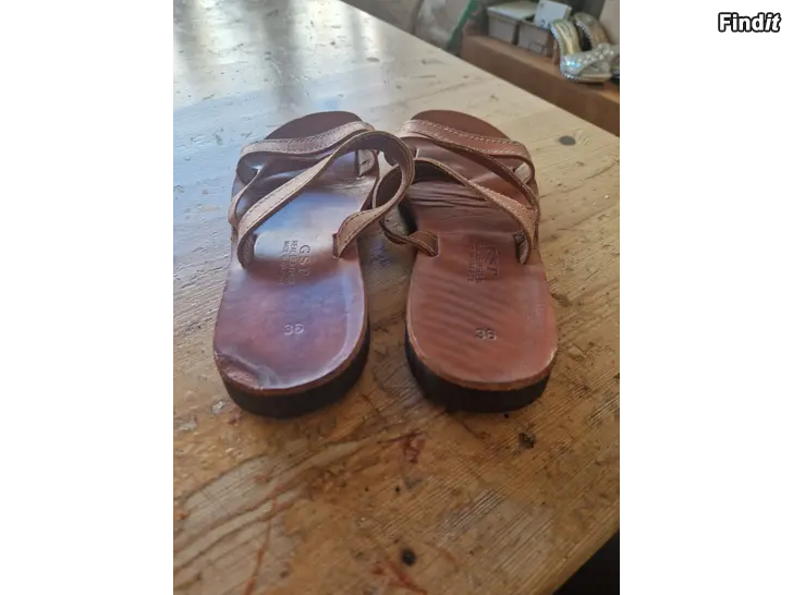 Snygga bruna sandaler från GSP i äkta läder med flera smala remmar över foten. Platt sula och öppen tå ger en avslappnad och stilren look. Perfekta för varma dagar när du vill ha något både bekvämt och trendigt.