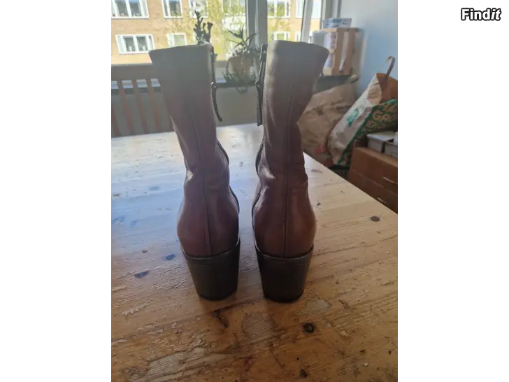 Bruna läderstövlar med klack st 36